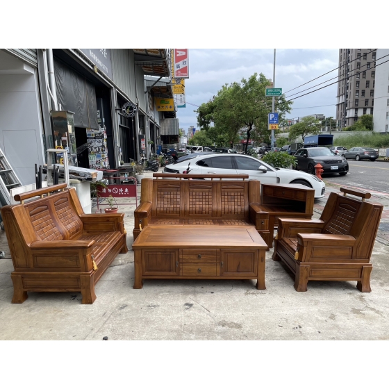 大三元二手家具*' 正樟木實木1+2+3沙發組軟式坐墊(含大小茶几)*香樟木家具-客廳桌椅組-台中二手家具-城市二手家具