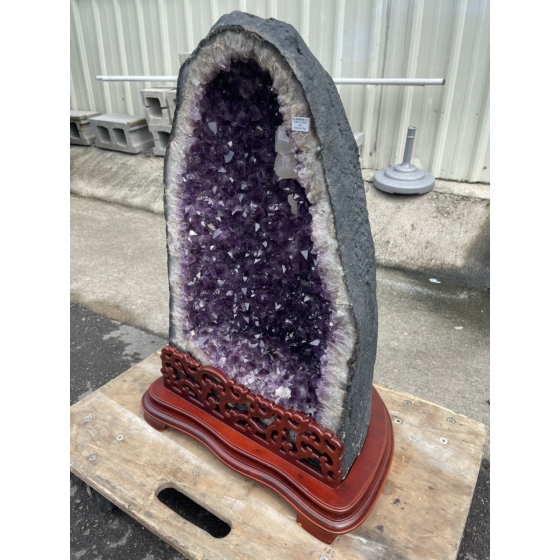 大三元二手家具*巴西62公斤紫晶洞(附實木底座)*水晶洞-晶洞-原石紫晶洞-紫水晶-台中二手家具-2手貨-城市二手家具