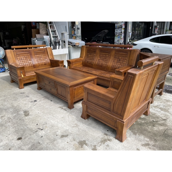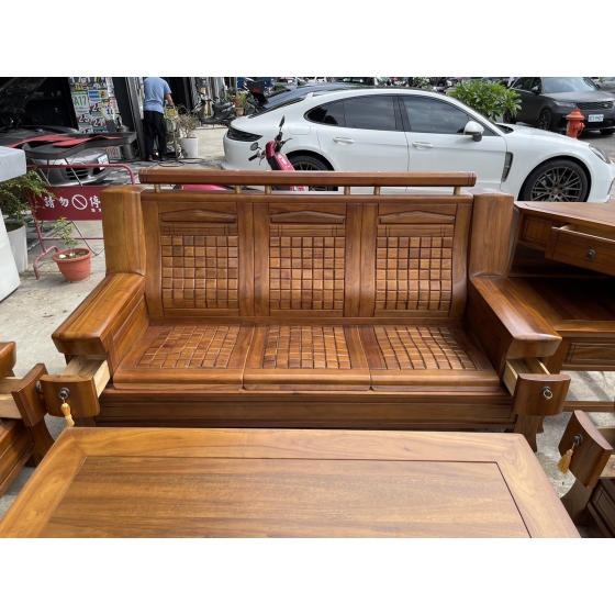 大三元二手家具*' 正樟木實木1+2+3沙發組軟式坐墊(含大小茶几)*香樟木家具-客廳桌椅組-台中二手家具-城市二手家具