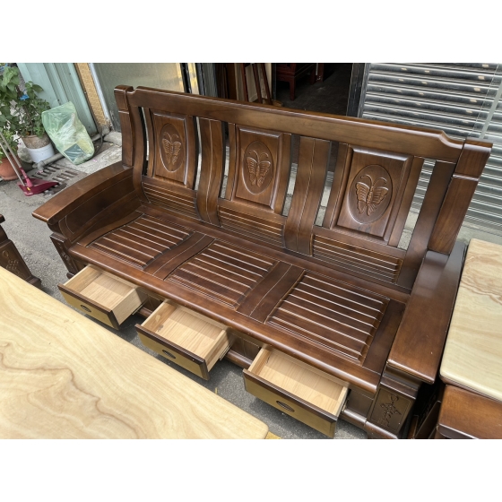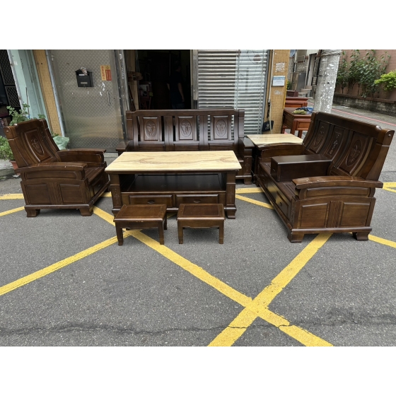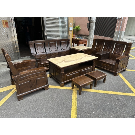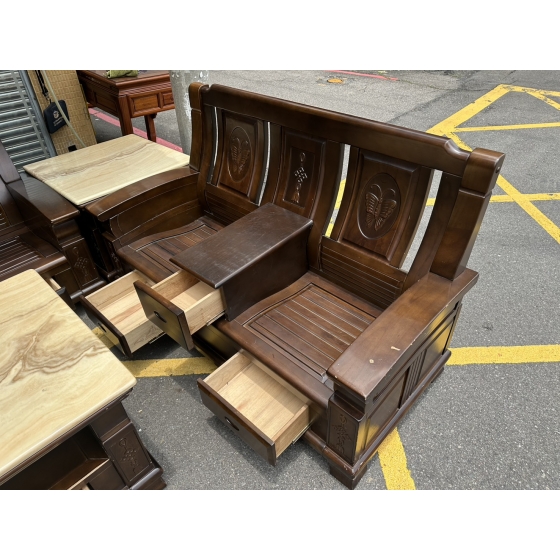 大三元二手家具-實木多功能收納型沙發組(1+2+3+大小大理石茶几)*實木沙發-大理石茶几-三人座沙發-實木家具-台中